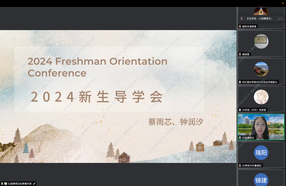 2024年8月18日上午9点,惠州学院与美国北阿拉巴马大学(UNA)合作举办的学前教育专业中外合作办学项目新生先导会,通过腾讯会议顺利召开。会议由惠州学院对外交流合作部部长林红主持,参会人员为教育科学学院全体领导班子和2024级新生。会议议程紧凑,内容丰富,旨在帮助新生更好地了解即将开始的大学生活。